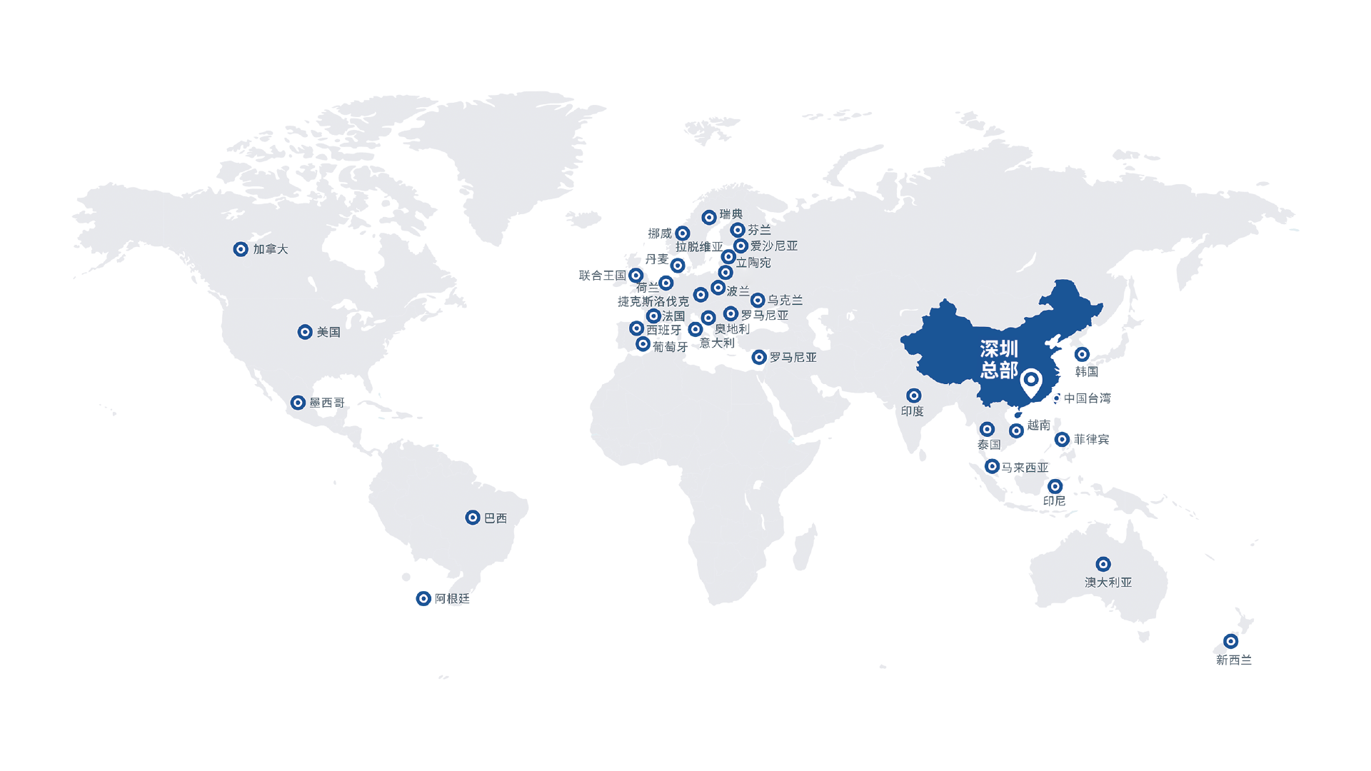 立足于國內深圳、張家港、常州、天津、長沙、蘇州、濟南生產(chǎn)基地與備品備件庫,國內外轄180+辦事處,在100多個國家和地區(qū)設立銷售服務機構,為全球用戶提供高品質的產(chǎn)品與優(yōu)質高效的服務。
